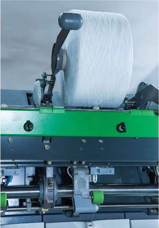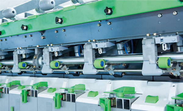 采用步進(jìn)電機單獨喂棉,結合專(zhuān)業(yè)的電腦軟件參數設計,實(shí)現接頭分段控制。提高了接頭質(zhì)量和成功率。配備氣圈補償器,接頭時(shí),負壓氣圈補償器會(huì )立刻儲存引紗羅拉帶來(lái)的盈余紗線(xiàn)。這能確保后道加工中的高質(zhì)量卷裝和更好的退繞。即使在最高速度時(shí)進(jìn)行接頭,也能確保完美的卷裝質(zhì)量。采用氣動(dòng)自動(dòng)抬臂裝置,斷頭自動(dòng)抬起,簡(jiǎn)單可靠氣氣管布置簡(jiǎn)單維護方便。接頭操作智能控制,檔車(chē)工整備好合適的紗頭并將它放入引紗管,合上紡紗箱后接頭自動(dòng)完成。具有回退、變速喂棉、毫秒級時(shí)間控制,接頭質(zhì)量好,操作簡(jiǎn)單,保證了穩定的接頭成功率和接頭質(zhì)量。